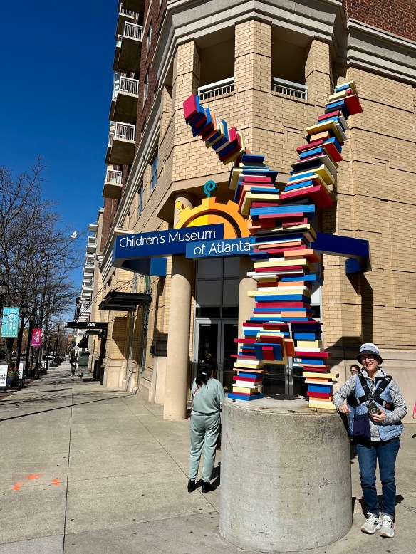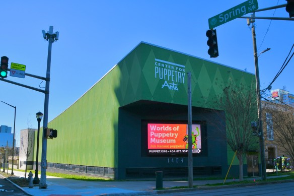 First stop in Atlanta was the Center for Puppetry Arts. I’d first learned about it from a Facebook post in a writing group I belong to. The Center has a permanent collection of Jim Henson creations. I was intrigued. The exhibit was so informative. Henson’s imagination was mind-blowing! I found myself smiling through the whole exhibit. Muppets, Sesame Street characters, The Dark Crystal, and more.