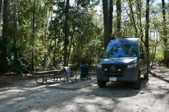 On Saturday, we met up with our friends from Charlotte at a campground in Blythe Island Regional Park, in Brunswick, Georgia. We camped for a night there and then moved on, with our friends, to Wekiwa Springs State Park in Apopka, Florida, for two more nights. Both campgrounds were great places to walk and discover wildlife. Even ticks, unfortunately.
