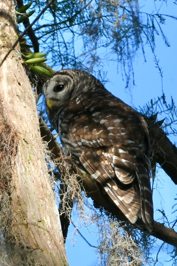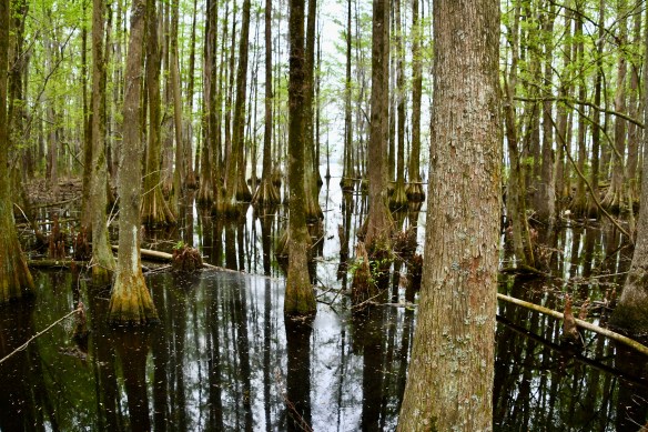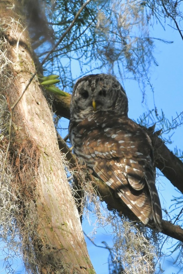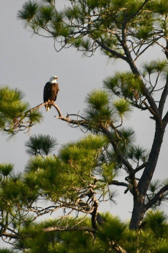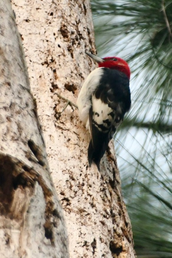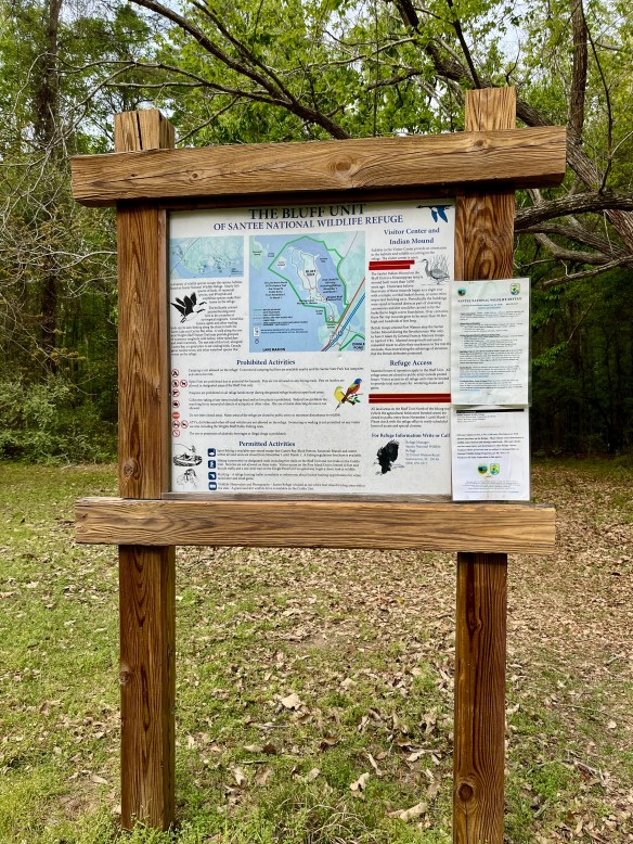 On Tuesday, I caught a Pileated Woodpecker at work before we left our Yemassee, South Carolina, campsite. Then, we re-visited one of our favorite spots, Santee National Wildlife Refuge. Like other wildlife refuges, it’s a big place. We visited the Bluff Unit in Summerton, South Carolina. The walk through the woods was nice, but the birds were all hiding that day. And something was burning in the distance, blowing smoke in our direction for a while. But we were rewarded that evening at our next campsite in Enfield, North Carolina, with a few avian visitors.