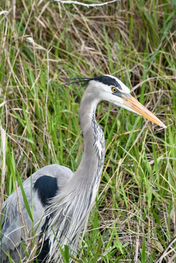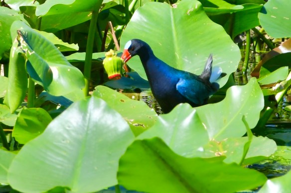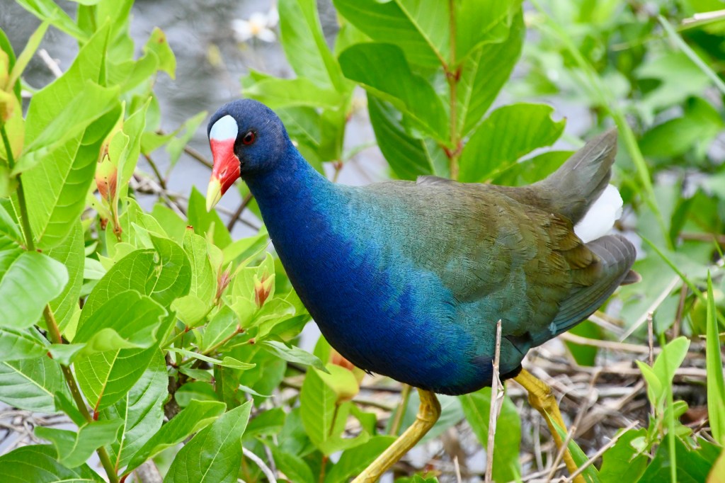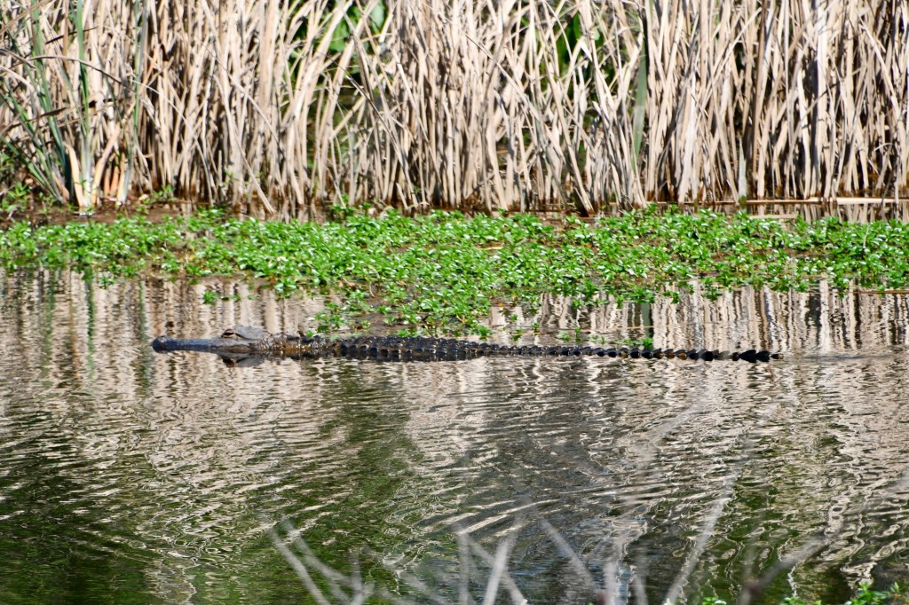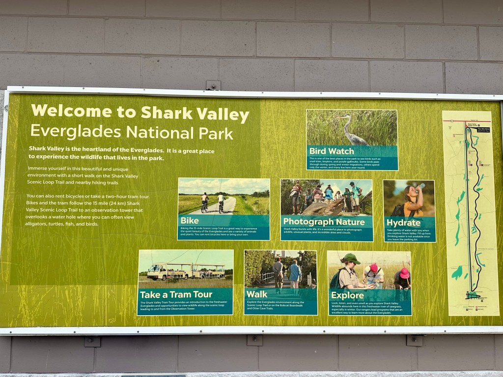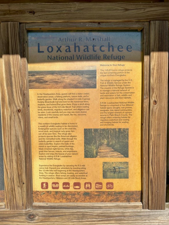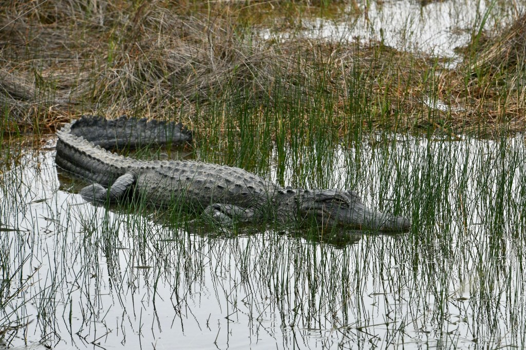 We decided to bike Shark Valley Trail at the National Park. It felt safer to me than walking next to the alligators. Mark actually rode out farther than I did and had his own intimate moment with an alligator (see pictures below) before riding back to meet me. We saw a Purple Gallinule for the first time. And so many Great Blue Herons and alligators that I didn’t stop to photograph them all. The ride out was easy. Piece o’ cake, I thought. And then we turned around. The headwind was formidable. I could barely go a mile at a time without a rest.