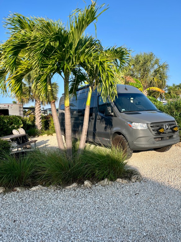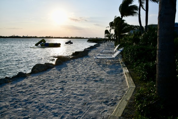 We pulled into our campsite in Summerland Key just before seven in the evening. The place was crowded and hopping. Karaoke in the pub, kids on electric scooters, and hot food in the camp store. The beach, a strip of sand behind some bushes was deserted, probably due to the chilly breeze blowing through.