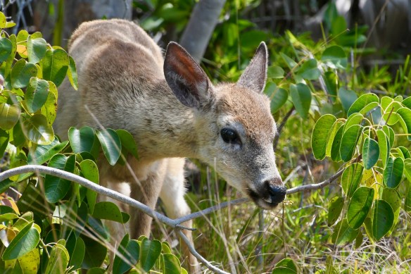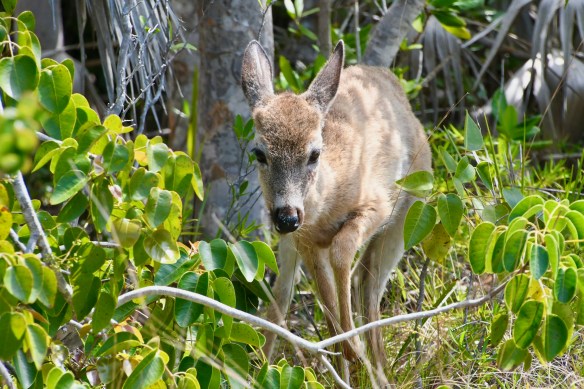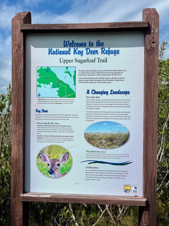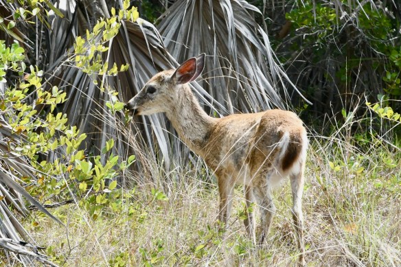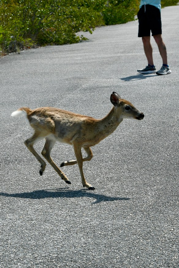 The National Key Deer Refuge was not too far up the road, so we visited the Upper Sugarloaf Trail in the morning. Key deer are an endangered smaller version of the white-tailed deer we see up north. One crossed our path as we drove to the trailhead. Then we walked (ran/biked) almost the whole, mostly deserted, paved path without another deer sighting. Until we were almost back to our parking spot. A lone deer stepped out to the edge of the woods along the path and started munching on leaves. We watched it for a good five to ten minutes before it crossed the pavement and disappeared into the brush on the other side. The only other wildlife sighting was a single Palm Warbler. At least I think that’s what it was.