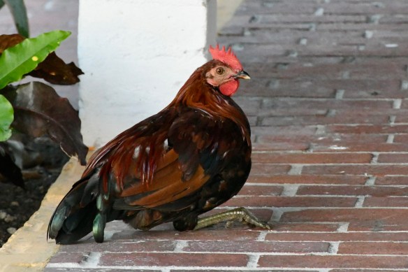 We hadn’t read much about Key West and had no idea that the place was overrun with feral chickens. What a hoot! They wandered the streets and sidewalks, randomly crowing. We encountered quite a few, along with one hawk, during our walking tour of all the historic sights.