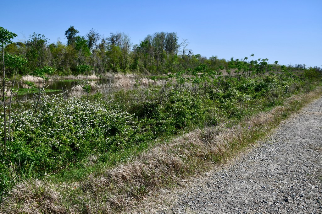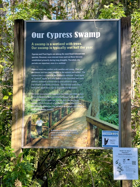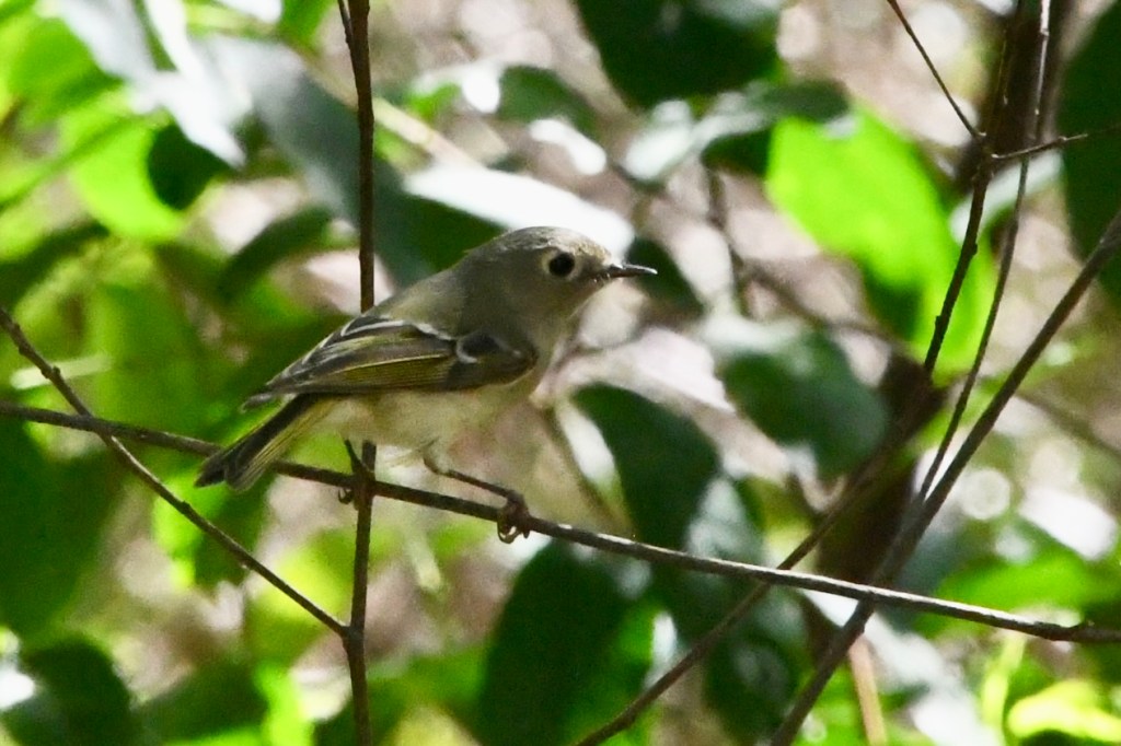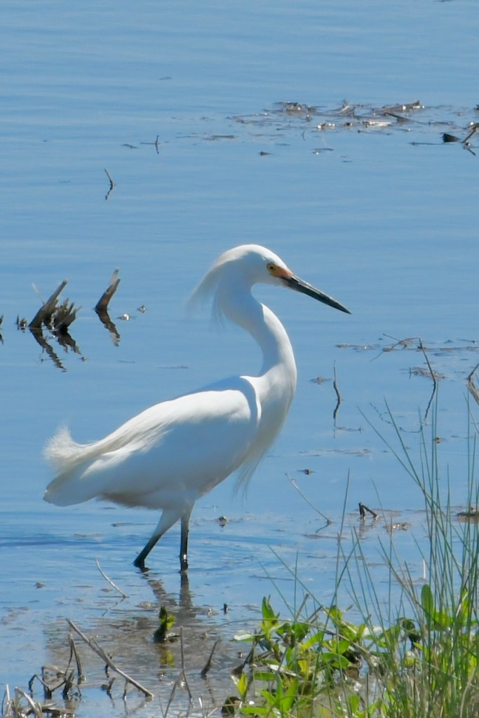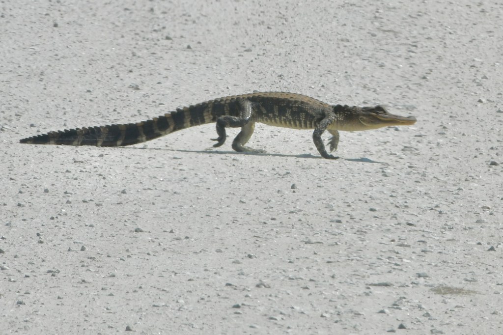 The next day was one of the warmer days on our trip and the beginning of our last week on the road. We visited Savannah National Wildlife Refuge in Hardeeville, South Carolina, and took their five-mile wildlife drive before parking at a second trail for a walk. We saw, among other creatures, a Snowy Egret, an American Coot, a Common Gallinule, and a Ruby-crowned Kinglet who was hiding its crown, making it hard to identify at first.