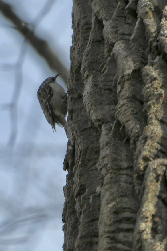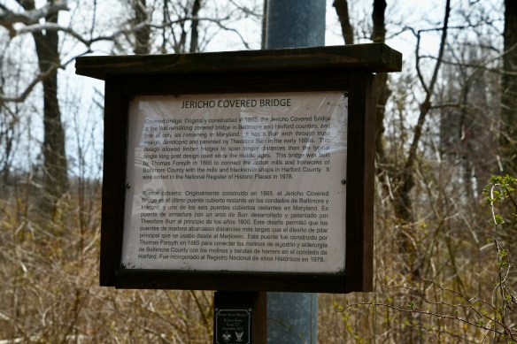 Wednesday was our “let’s get around DC and Baltimore without getting stuck in too much traffic” day. We did enjoy seeing all the cherry blossoms along the highway, though. And after passing Baltimore, we found the Jerusalem Mill Trail in Kingsville, Maryland, part of Gunpowder Falls State Park. It turned out to be a historic piece of town with a covered bridge, an old mill, and a small museum. The walk through the covered bridge and then into the woods was relaxing. Only one bird crossed my path, though: a Brown Creeper.