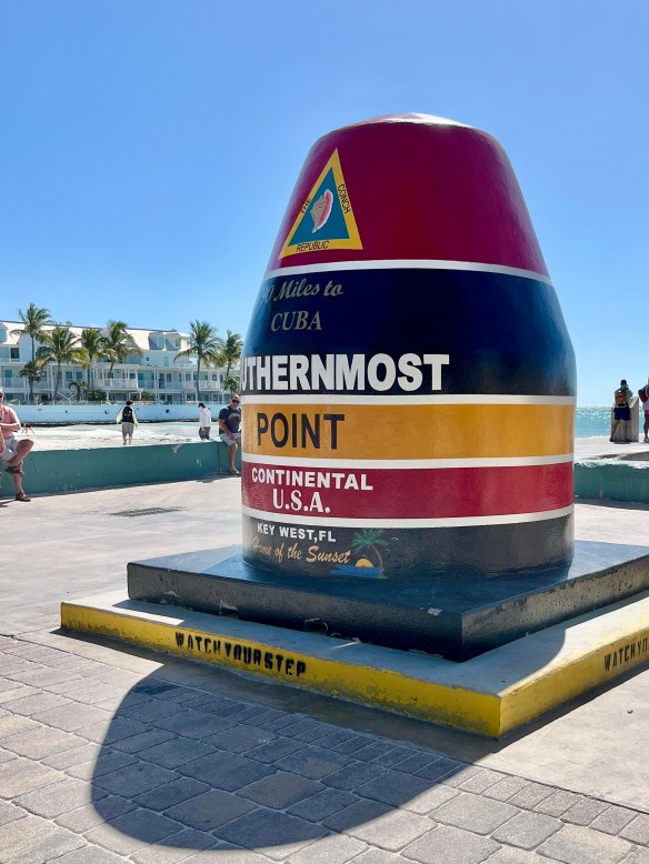 The walking tour ended at the southernmost point of the U.S (and also the southern end of Route 1). A large monument in the shape of a buoy marks the spot (or maybe the fictional spot) and is a tourist attraction for photo opportunities.