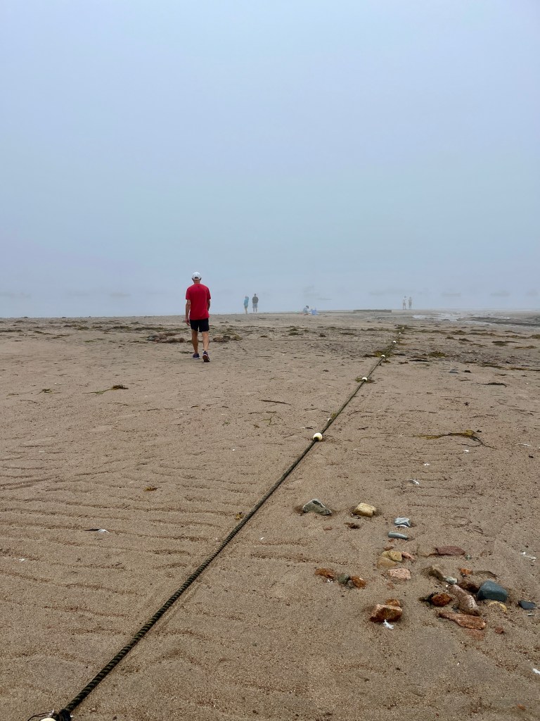 After our bike ride, we traveled west, following the northern coast, to check out Brackley Beach in Prince Edward Island National Park. Apparently, a rain shower had just passed through, even though we encountered nothing but sunny skies on our way. The rain made the dark sand even darker, almost muddy. Very different from the Cape Cod beaches we’re used to.