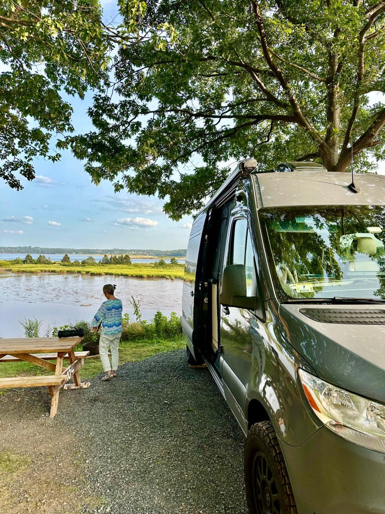 The next morning we aimed the van toward New Brunswick. After a stop in Amherst, Nova Scotia, for a hike around Amherst Point Bird Sanctuary, we took a detour to check out a monarch sculpture in Dieppe, New Brunswick (thanks, Tricia S.), before landing back at Rockwood Park in St. John, which we’d left a mere four days earlier.