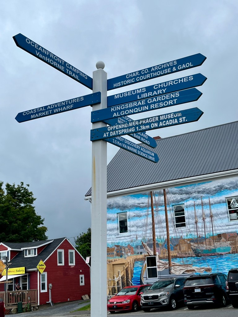 After realizing we didn’t have enough time to enjoy a coastal drive around Cape Breton, we thought a night in a hotel in Halifax might be a nice change of pace, along with another ferry trip back to New Brunswick. To make a long story a lot shorter, that didn’t work out. We made a ‘non-refundable’ reservation at the Marriott Harbourfront, only to discover that our van couldn’t fit in their parking garage and the parking lot they sent us to, blocks away, was closed. It took a little pleading at the front desk to cancel the reservation. And there was no room for us on the ferry, either. Oh, well.