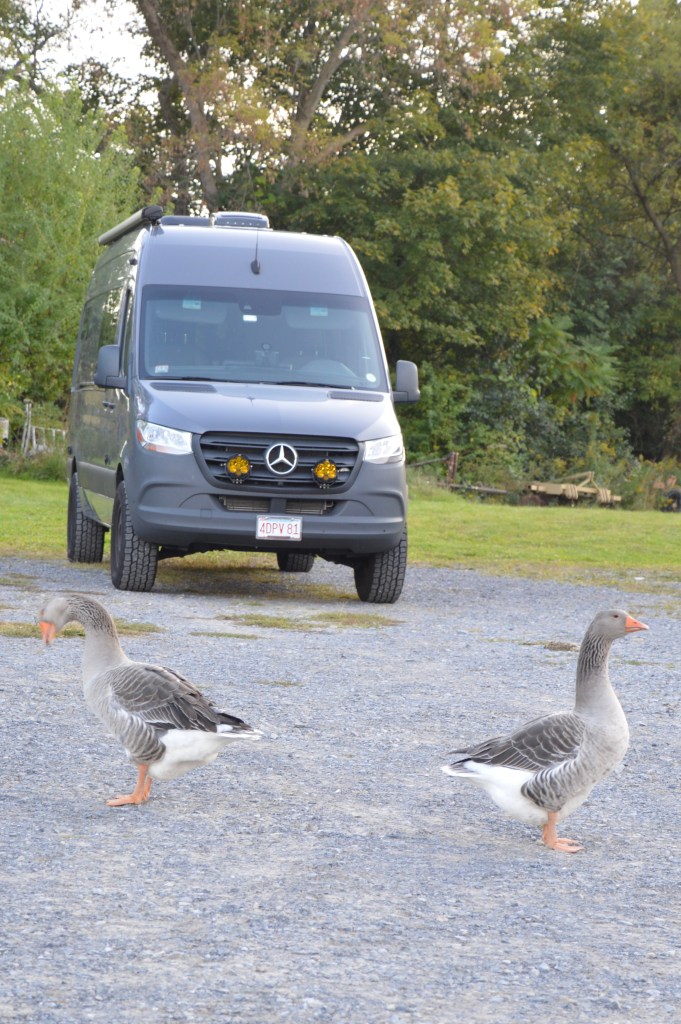 Our first night away from home, we stayed at Twin Brook Camillus Farm in Camillus, New York. Owned by a lovely retired couple, Craig and Elaine, the farm is home to sheep, chickens, turkeys, dogs, and a pair of Talouse geese.