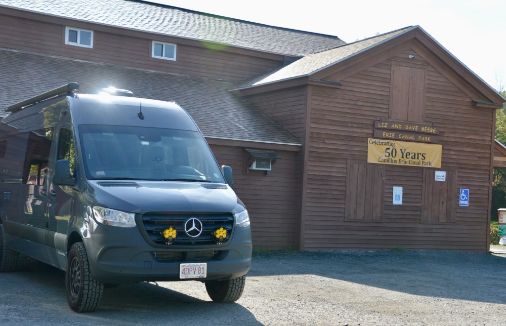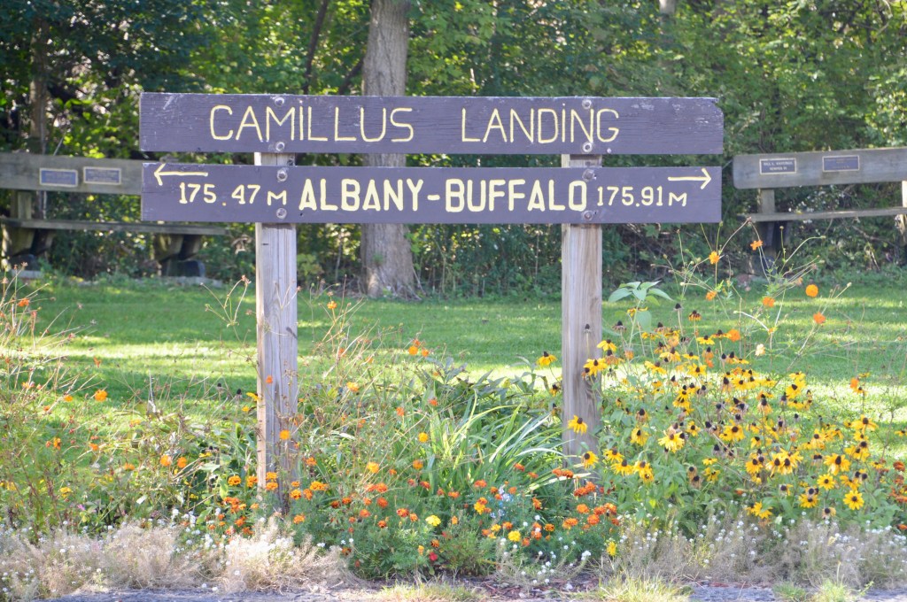 We bought farm fresh (still warm) eggs and frozen chicken from their self-serve barn-stand and, on our first official morning on the road, we, of course, stopped at Walmart for a few things. Then, on to Erie Canal Park in Camillus, where we took our morning walk/run.
