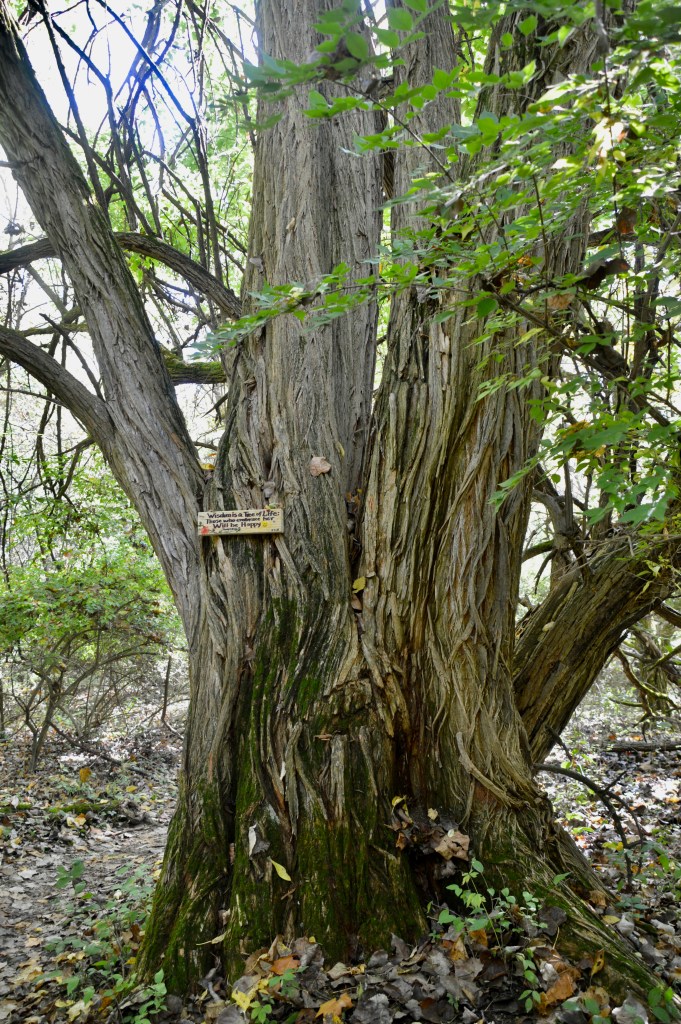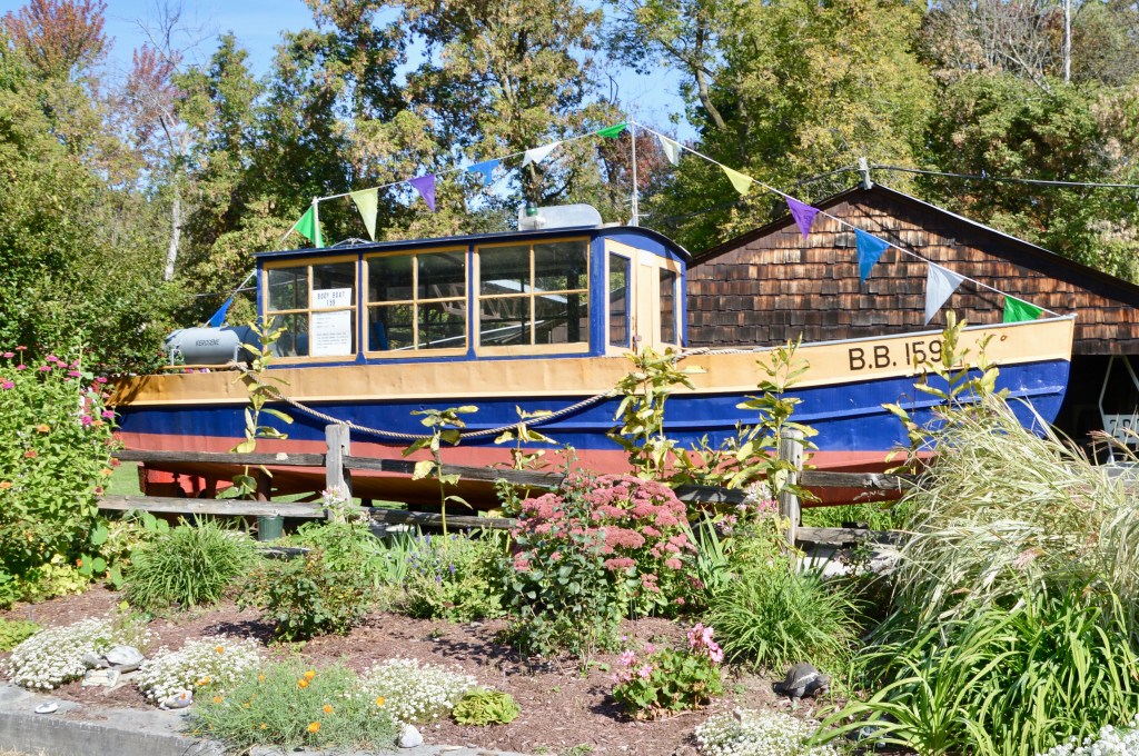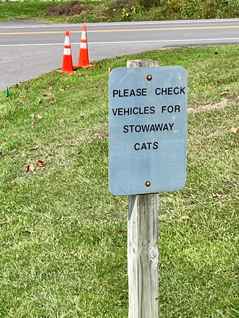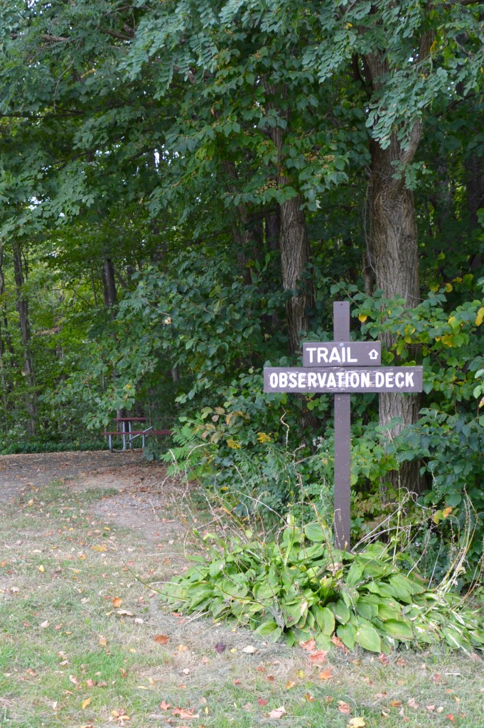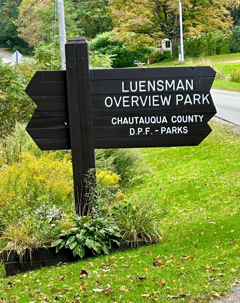 In the morning, we popped over to Luensman Overview Park in Portland, New York, for a walk/run, then back to the KOA for showers. Passed an interesting sign, enjoyed some fall leaves along the way, and were disappointed at the ‘overview’ where a haze veiled the supposed view of Lake Erie and Canada, beyond.
