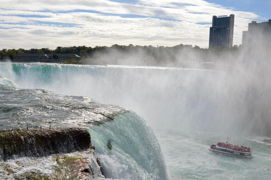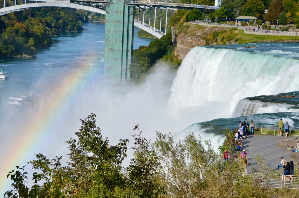 We arrived at Niagara Falls State Park on Goat Island about mid-afternoon. Thirty-nine years ago, we stopped at the Falls on the Canadian side as we drove home from our honeymoon. This time, we got the American view and waved to Canada across the way.