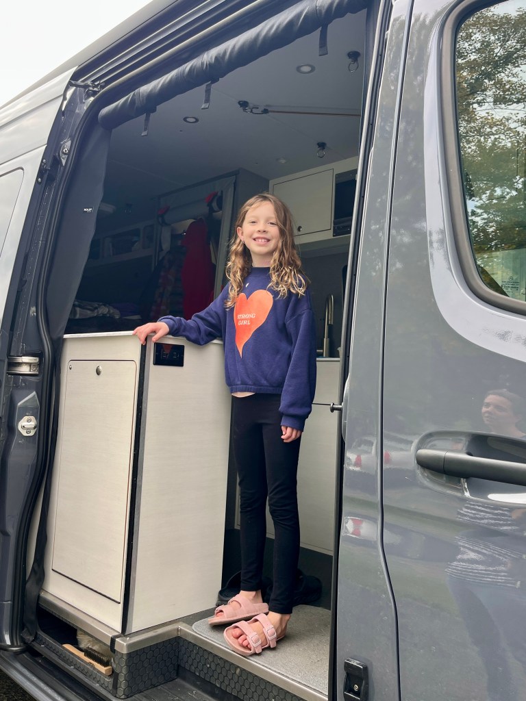 We got back on the road, crossed the Indiana state line, and pulled into my cousin’s driveway in Muncie just after 3 p.m. It was good to see them again, as we’d stopped at their house over a year ago when we first drove our new Sprinter back from Boulder, Colorado. The kids were taller. And they’d just just bought a new house around the corner from their current house, so lots of catching up to do.