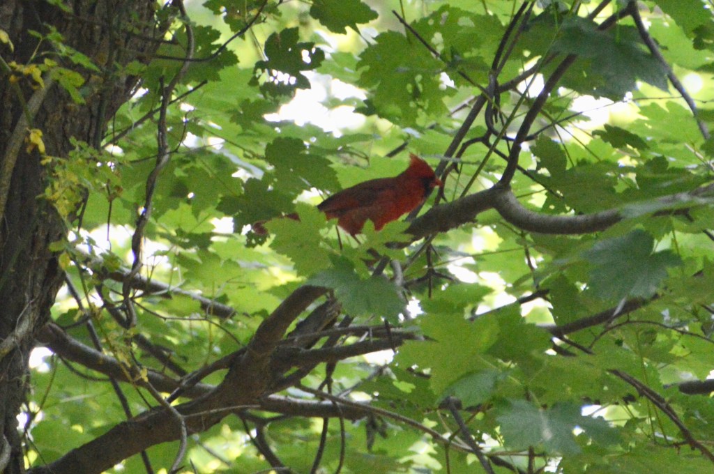 After the Botanic Gardens, the four of us had dinner at a local Mexican restaurant. At dinner, Donna told us about a couple of young Great Horned Owls that lived in a tree along a walking path near her house. So, of course, we had to follow her home. First, we got a tour of her own home gardens, which were beautiful! Then, we took a walk in search of owls… And we found them! (Along with our first sighting of a Spotted Towhee.)