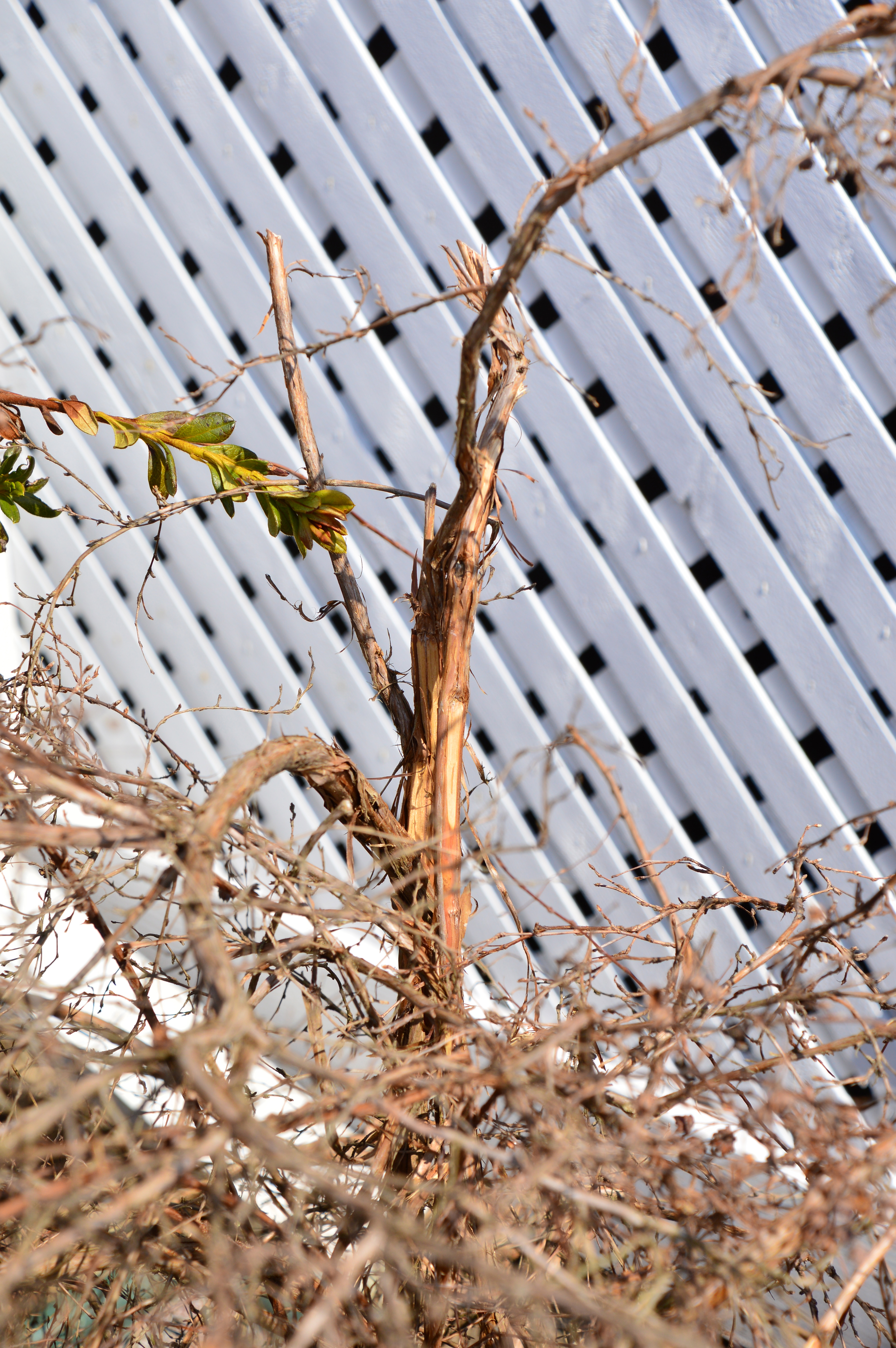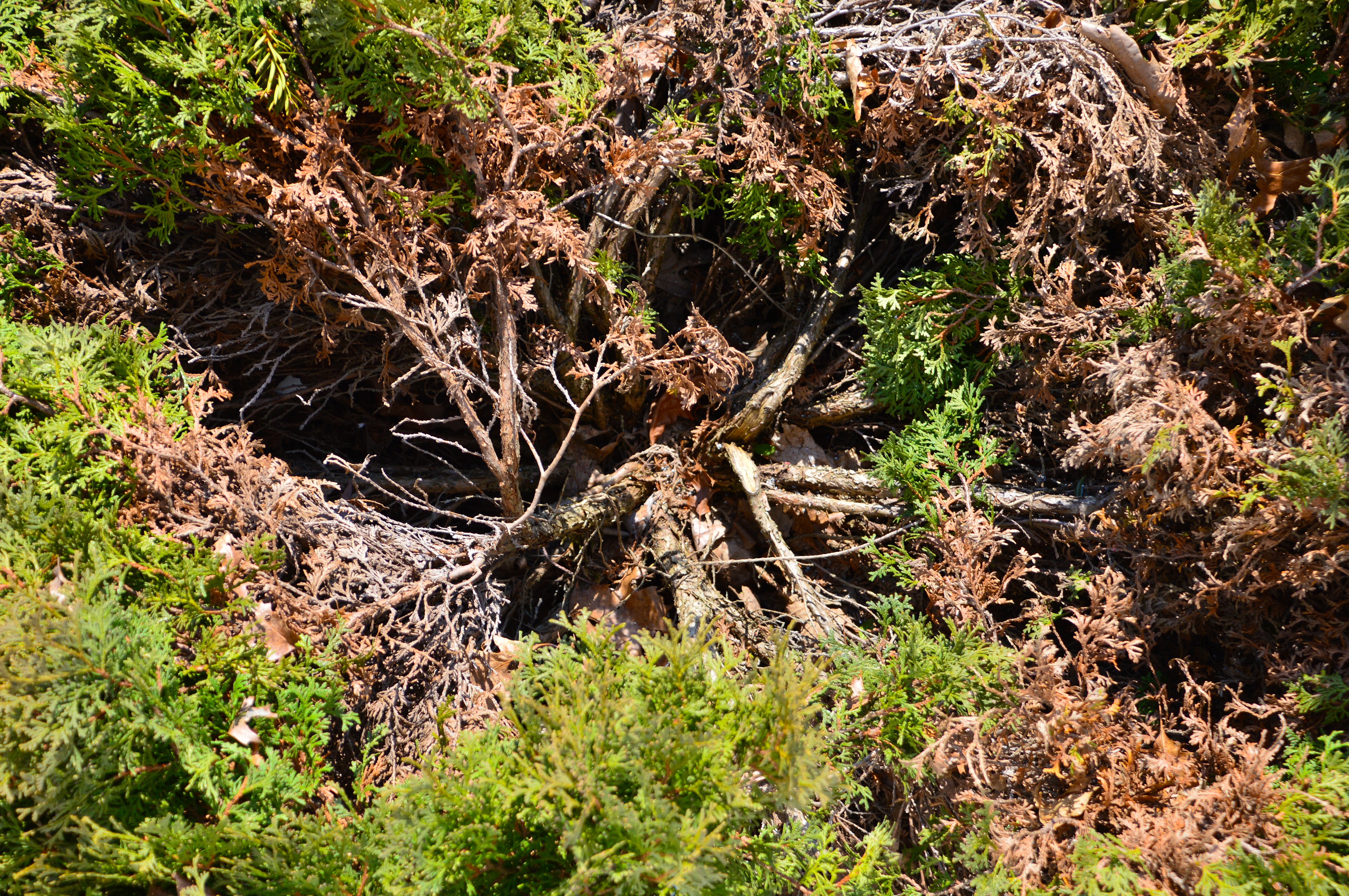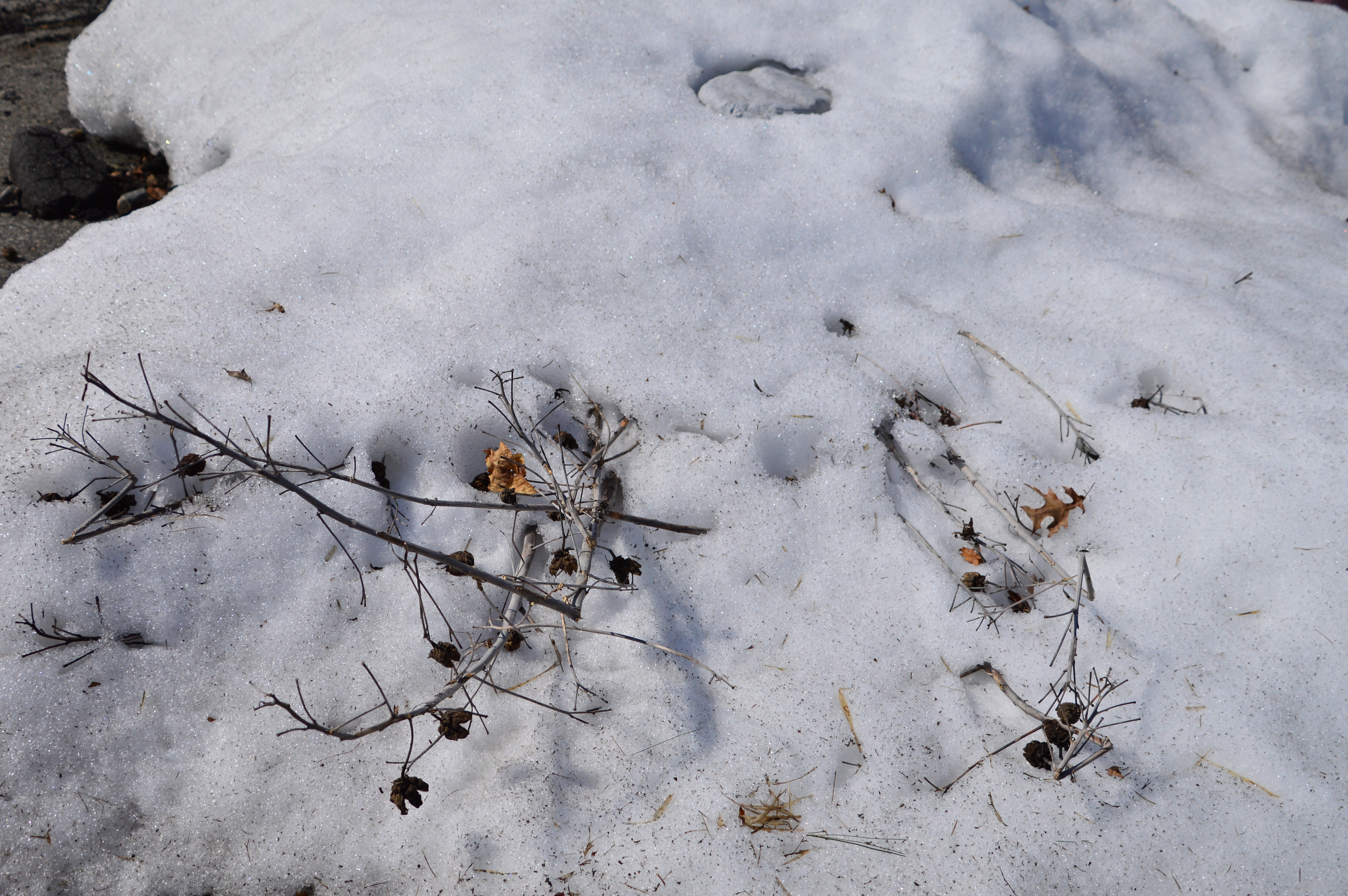 It’s April 3rd, Good Friday, and it’s 67º outside my window. Spring has arrived and winter is slowly receding from New England. It has left it’s mark. Below, a previously globe-shaped bush has flattened under the weight of the snow…
